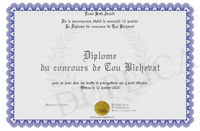 Envoyez par email votre Diplôme du concours de Tou Bichevat personalisé