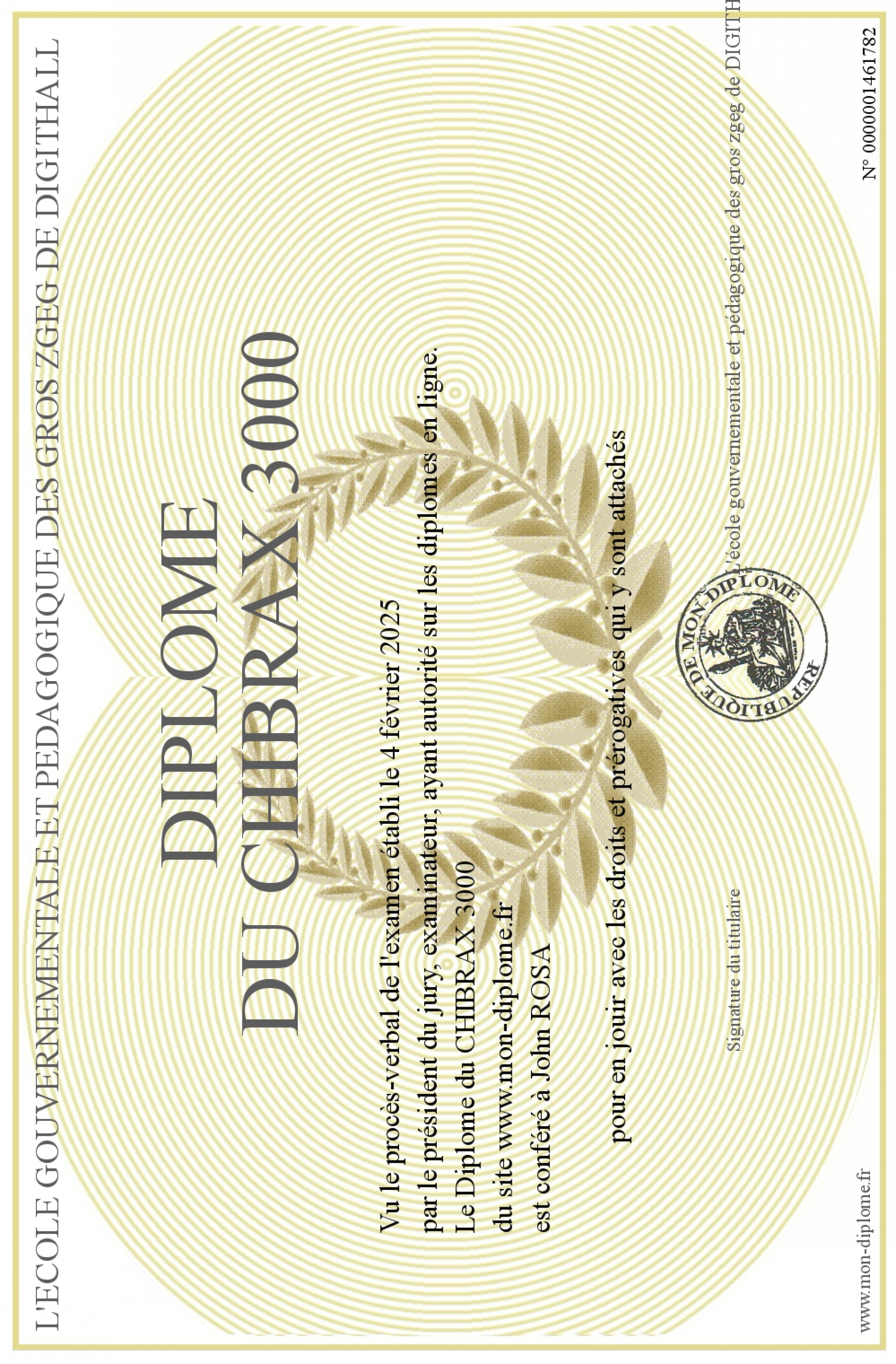 Envoyez par email votre Diplôme du CHIBRAX 3000 personalisé
