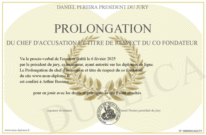 Envoyez par email votre Prolongation du chef d'accusation et titre de respect du co fondateur personalisé