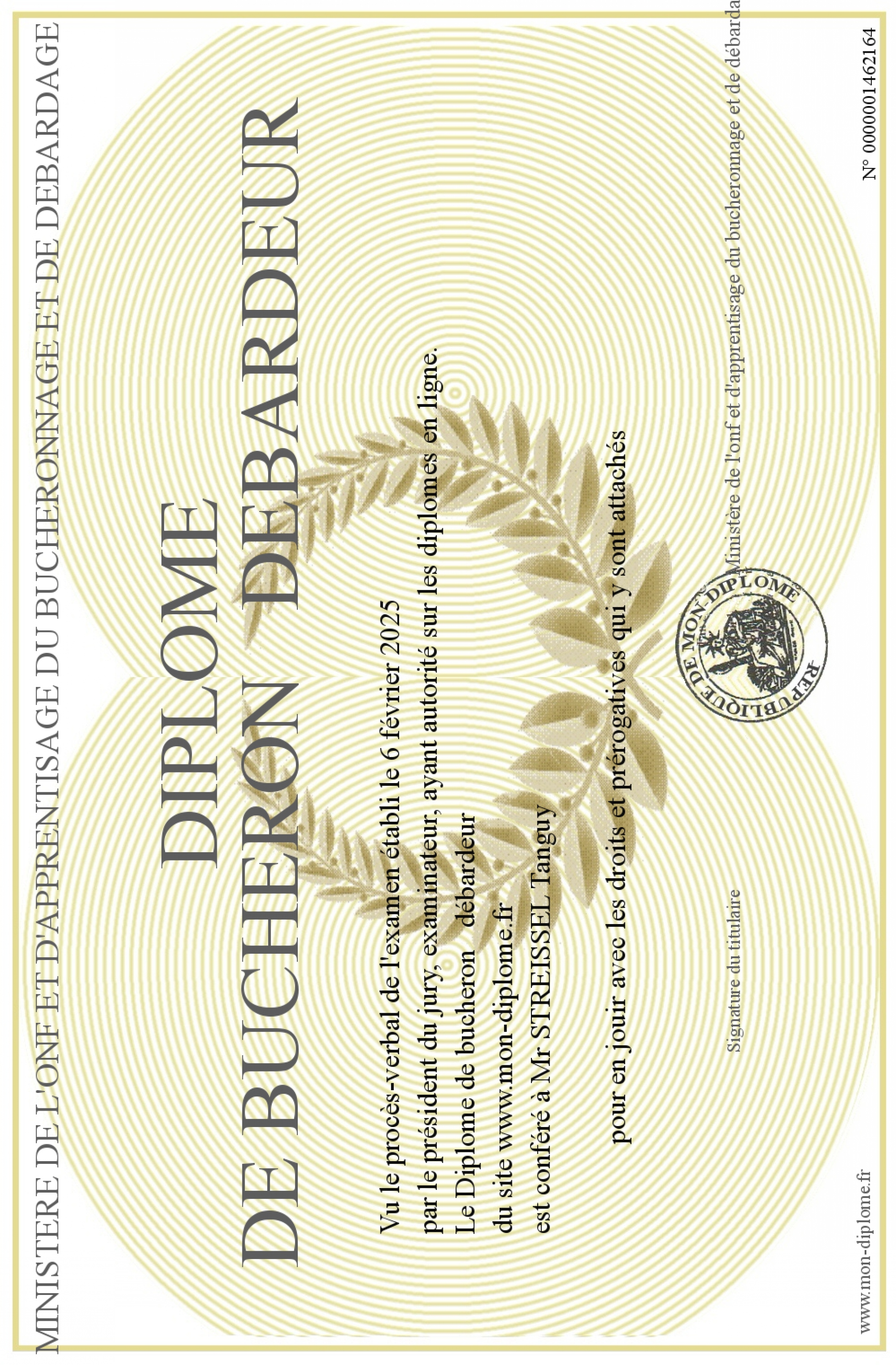 Envoyez par email votre Diplôme de bucheron débardeur personalisé