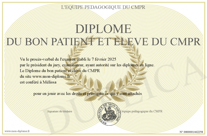 Envoyez par email votre Diplôme du bon patient et élève du CMPR personalisé