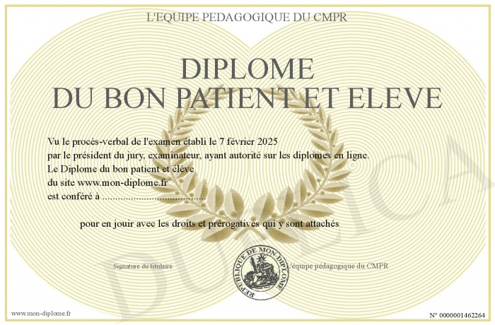 Envoyez par email votre Diplôme du bon patient et élève personalisé