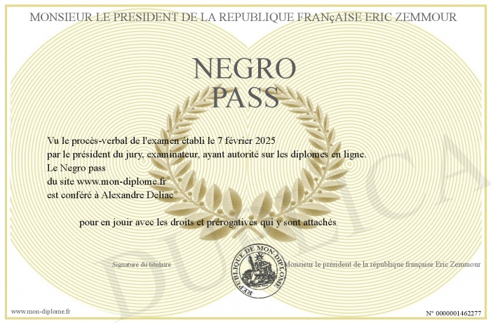 Envoyez par email votre Negro pass personalisé