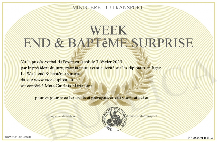 Envoyez par email votre Week end & baptême surprise personalisé
