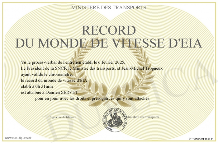 Envoyez par email votre record du monde de vitesse d'EIA personalisé