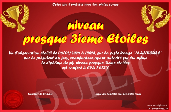 Envoyez par email votre niveau presque 3ieme Etoiles personalisé