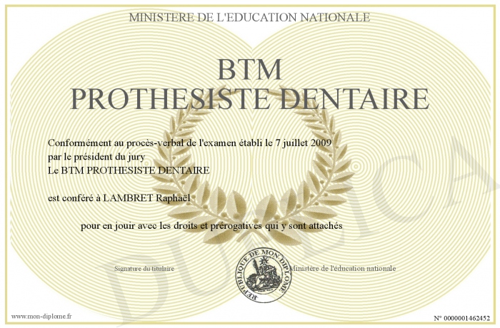 Envoyez par email votre BTM PROTHESISTE DENTAIRE personalisé