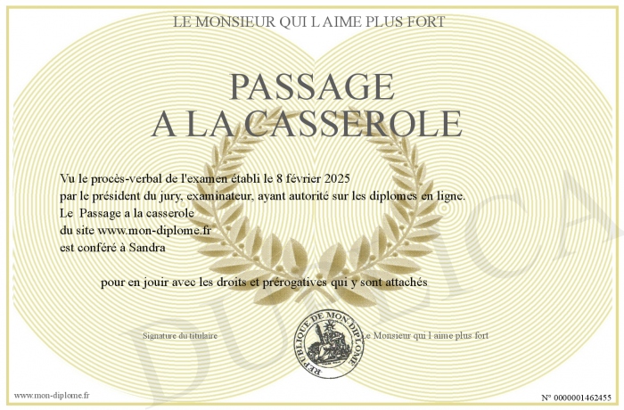 Envoyez par email votre Passage a la casserole personalisé