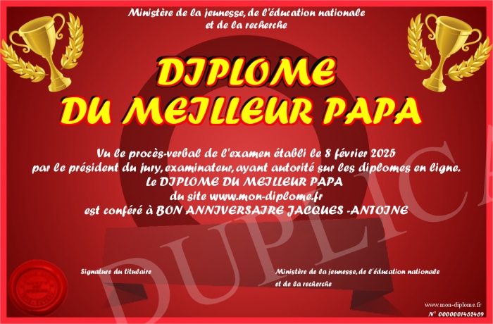 Envoyez par email votre DIPLOME DU MEILLEUR PAPA personalisé