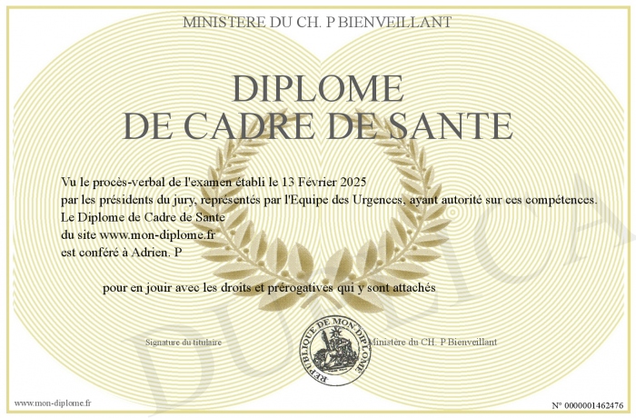 Envoyez par email votre Diplôme de Cadre de Sante personalisé