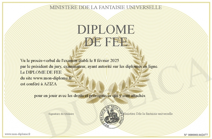 Envoyez par email votre DIPLOME DE FEE personalisé