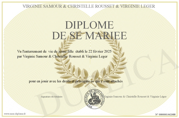Envoyez par email votre Diplôme de se mariée personalisé
