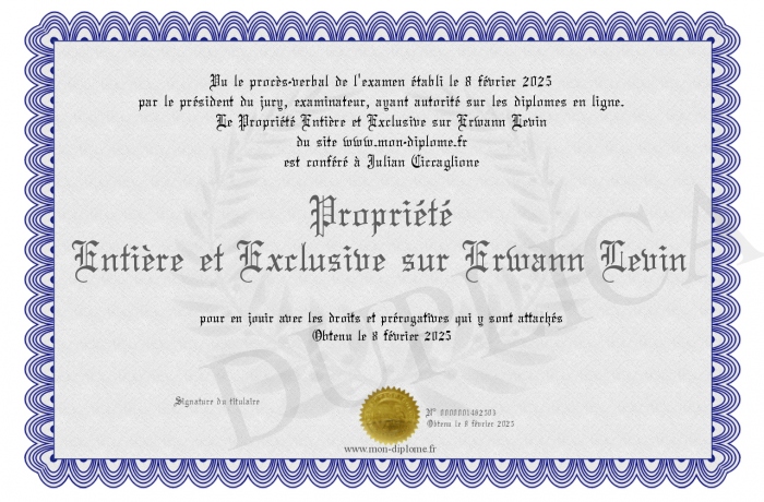 Envoyez par email votre Propriété Entière et Exclusive sur Erwann Levin personalisé