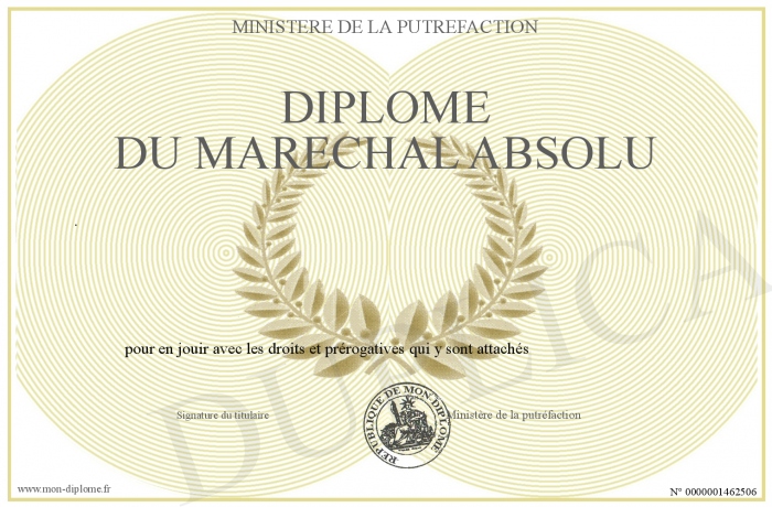 Envoyez par email votre Diplôme du Maréchal Absolu personalisé