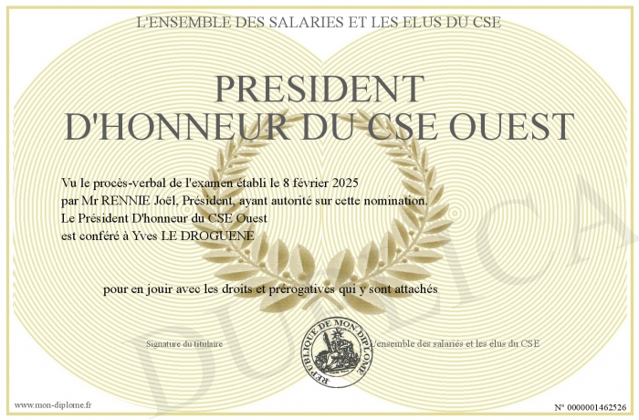 Envoyez par email votre Président D'honneur du CSE Ouest personalisé