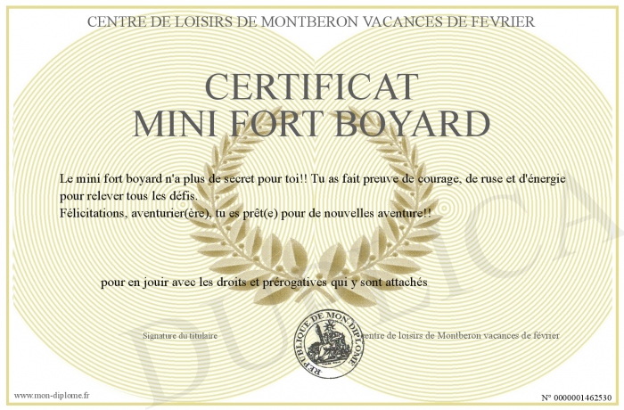 Envoyez par email votre certificat mini fort Boyard personalisé