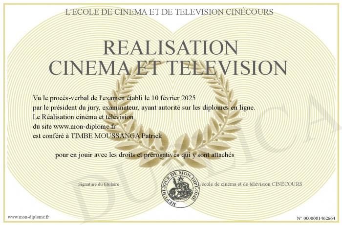 Envoyez par email votre Réalisation cinéma et télévision personalisé