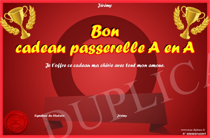 Envoyez par email votre Bon cadeau passerelle A en A personalisé