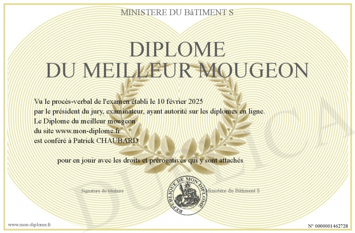 Envoyez par email votre Diplôme du meilleur mougeon personalisé