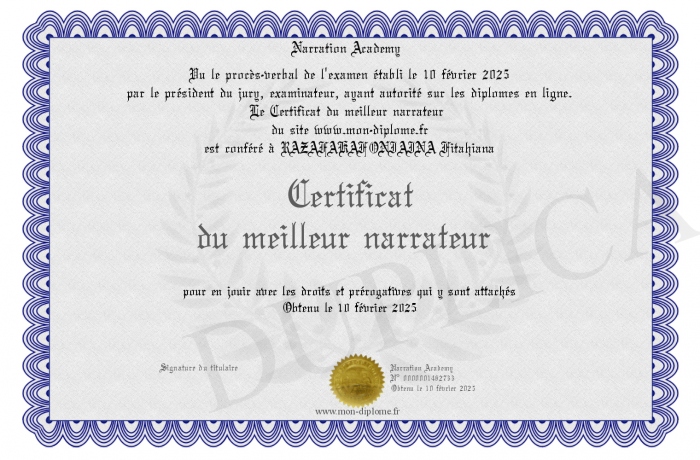 Envoyez par email votre Certificat du meilleur narrateur personalisé