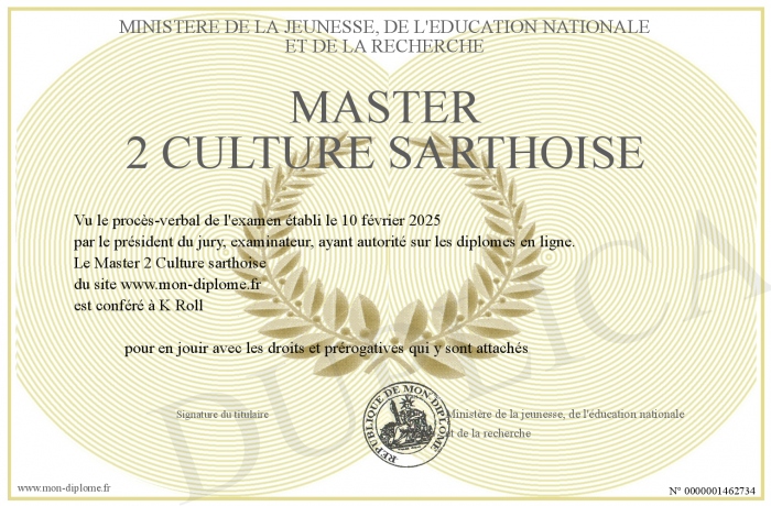 Envoyez par email votre Master 2 Culture sarthoise personalisé