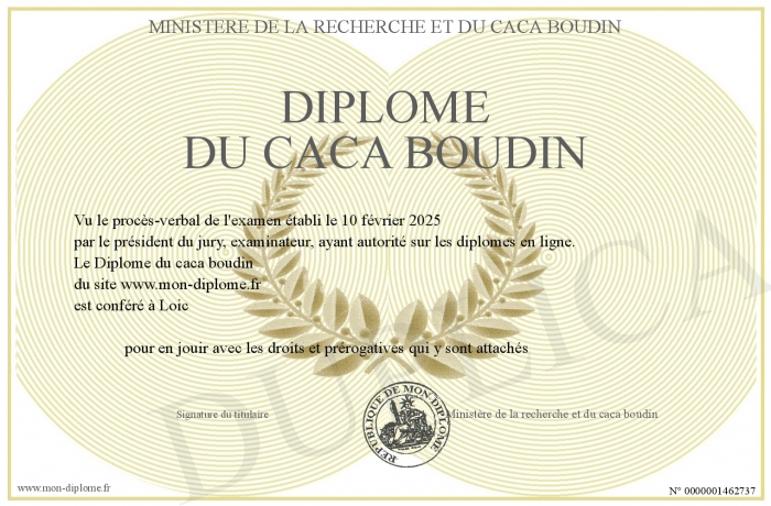 Envoyez par email votre Diplôme du caca boudin personalisé