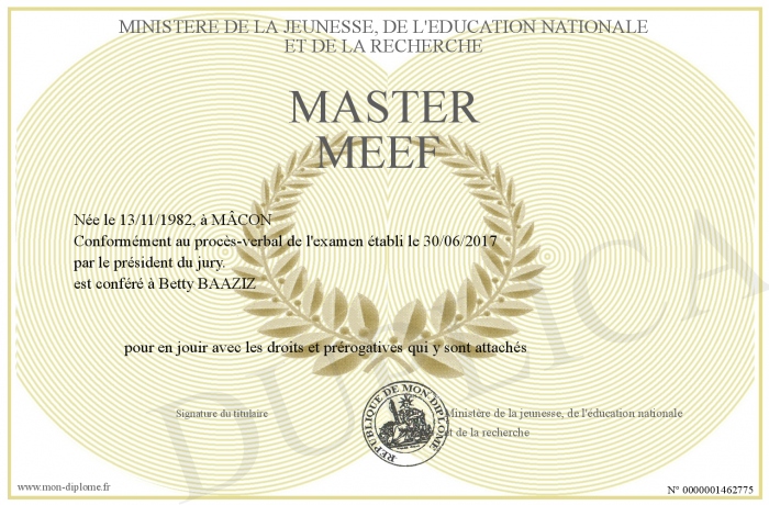 Envoyez par email votre MASTER MEEF personalisé