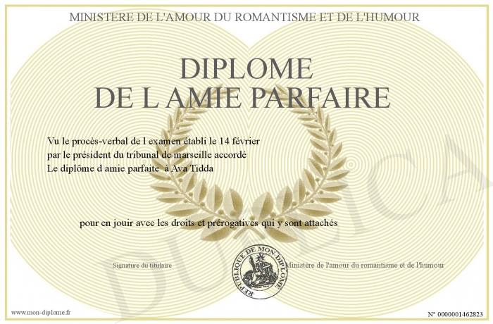 Envoyez par email votre Diplôme de l amie parfaire personalisé