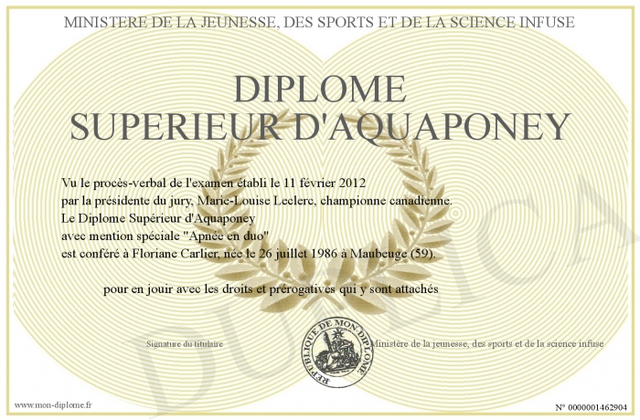 Envoyez par email votre Diplôme Supérieur d'Aquaponey personalisé