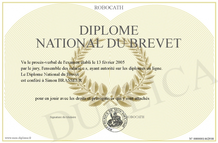 Envoyez par email votre Diplôme National du Brevet personalisé