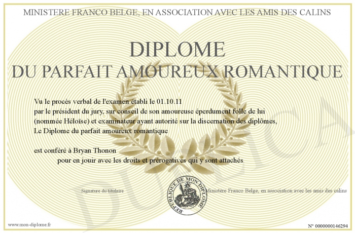 Envoyez par email votre Diplôme du parfait amoureux romantique personalisé