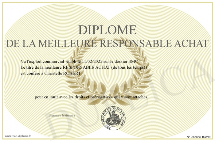 Envoyez par email votre Diplôme de la meilleure RESPONSABLE achat personalisé