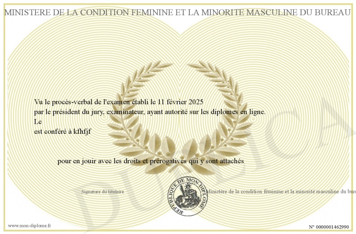 envoyé par le Ministère de la condition féminine et la minorité masculine du bureau !