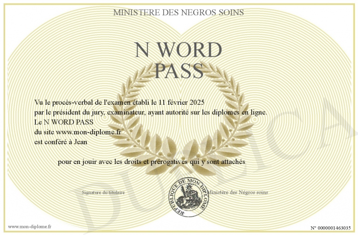 Envoyez par email votre N WORD PASS personalisé