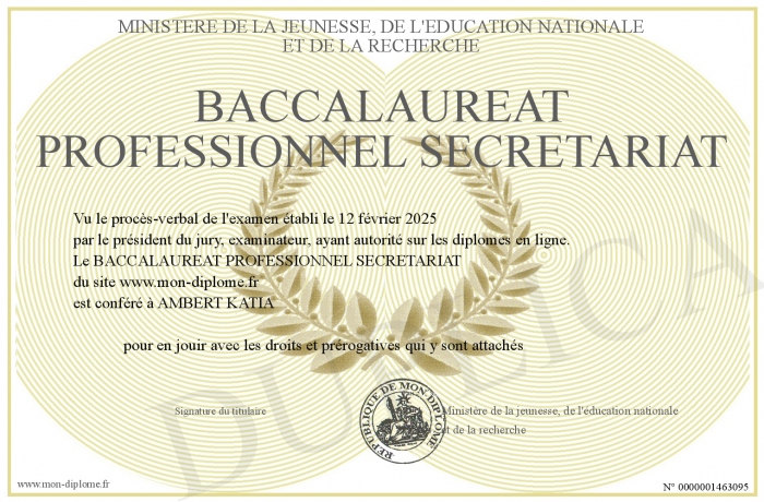 Envoyez par email votre BACCALAUREAT PROFESSIONNEL SECRETARIAT personalisé
