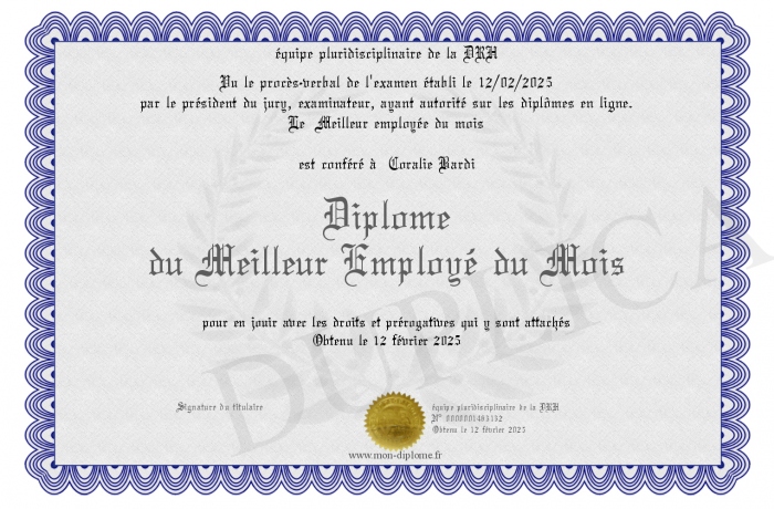 Envoyez par email votre Diplôme du Meilleur Employé du Mois personalisé