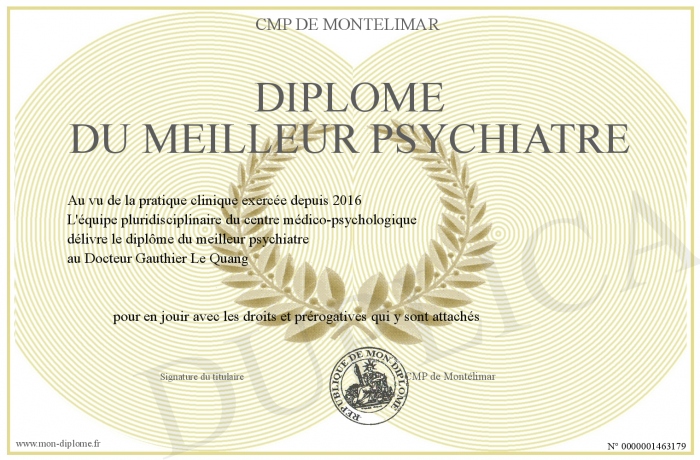 Envoyez par email votre Diplôme du meilleur psychiatre personalisé