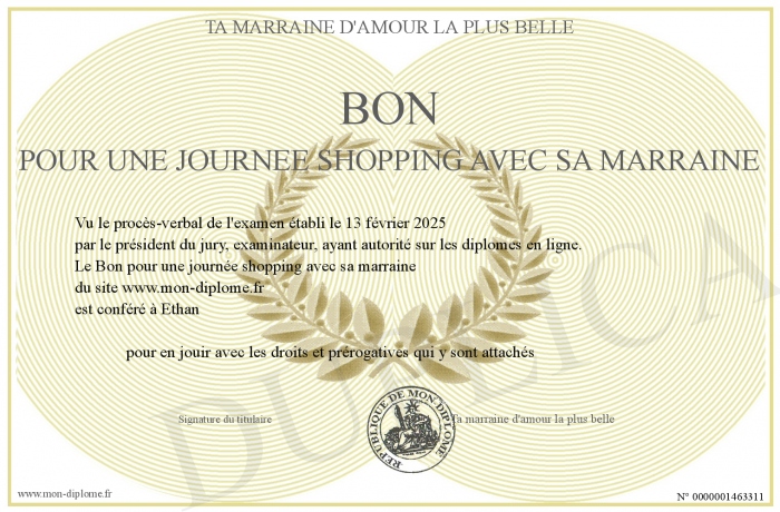 Envoyez par email votre Bon pour une journée shopping avec sa marraine personalisé