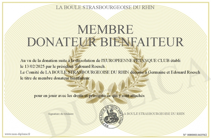 Envoyez par email votre MEMBRE DONATEUR BIENFAITEUR personalisé