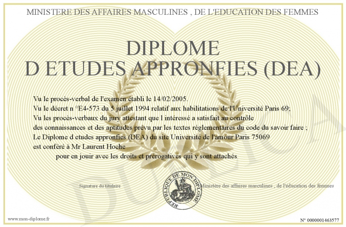 Envoyez par email votre Diplôme d etudes appronfies (DEA) personalisé