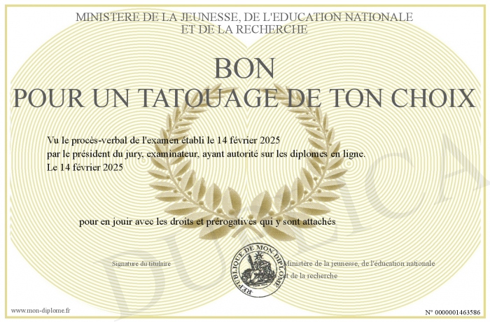 Envoyez par email votre bon pour un tatouage de ton choix personalisé