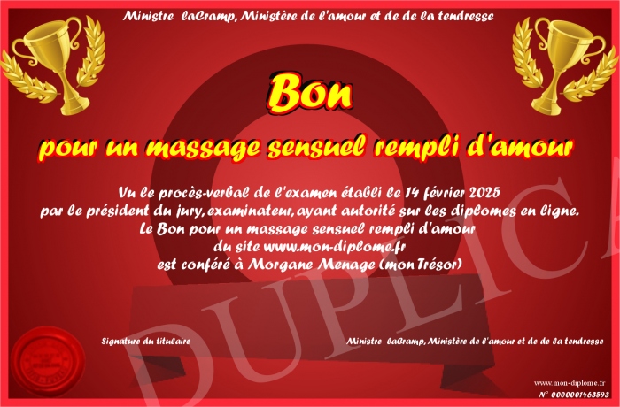 Envoyez par email votre Bon pour un massage sensuel rempli d'amour personalisé