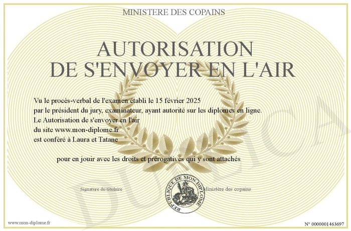 Envoyez par email votre Autorisation de s'envoyer en l'air personalisé