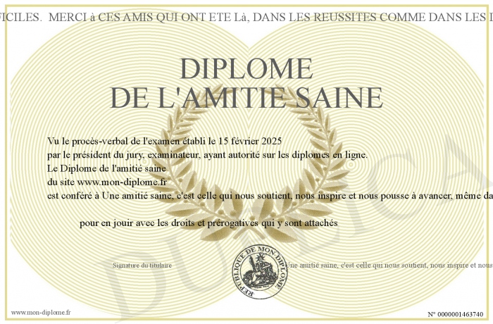 Envoyez par email votre Diplôme de l'amitié saine personalisé