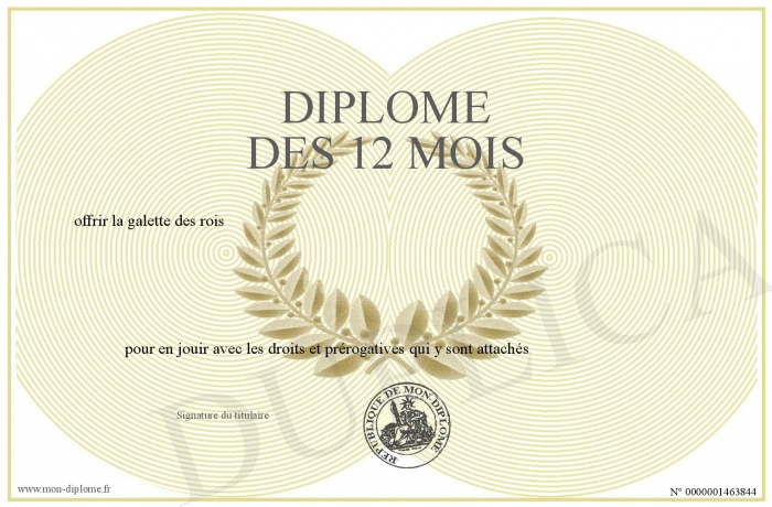 Envoyez par email votre Diplôme des 12 mois personalisé