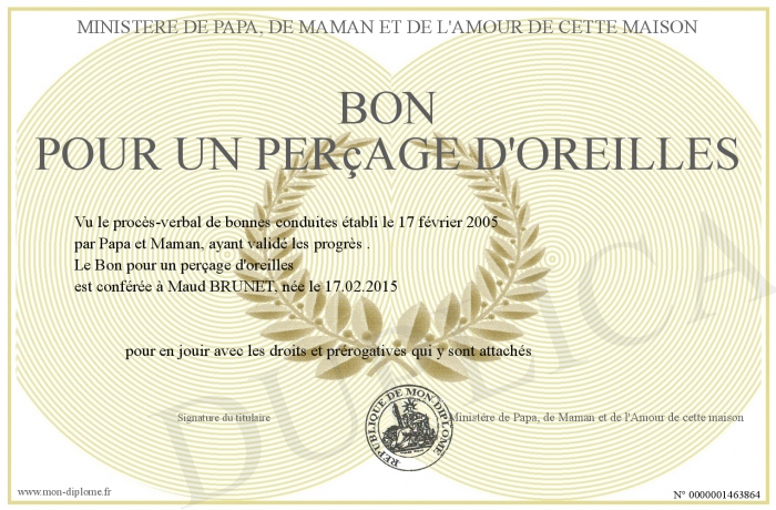 Envoyez par email votre Bon pour un perçage d'oreilles personalisé