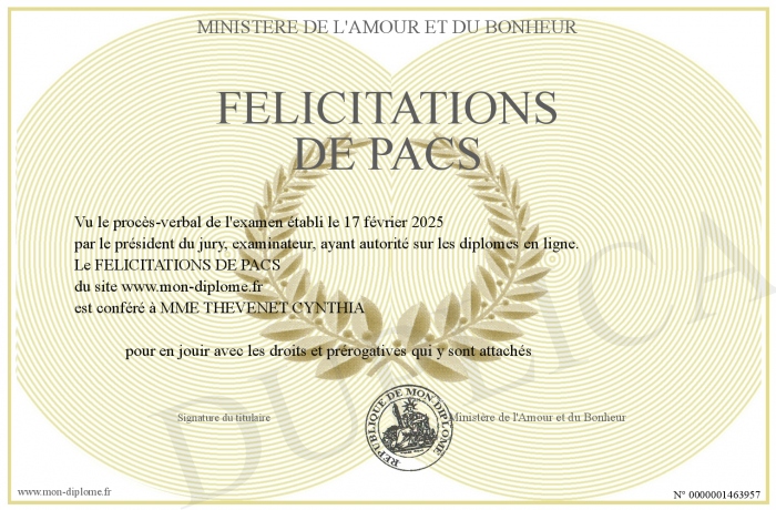 Envoyez par email votre FELICITATIONS DE PACS personalisé