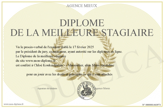 Envoyez par email votre Diplôme de la meilleure stagiaire personalisé