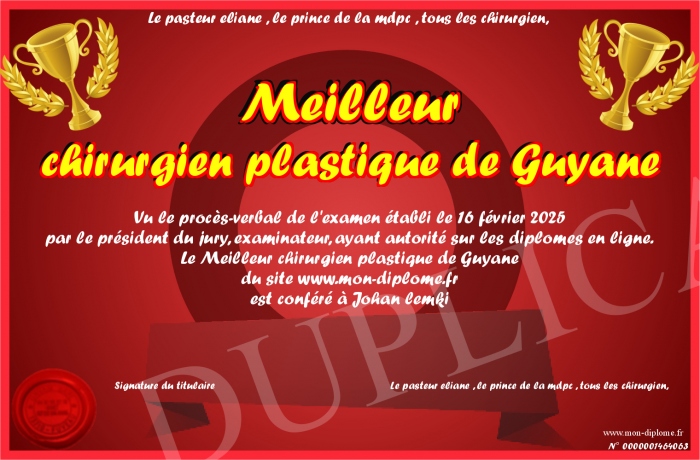 Envoyez par email votre Meilleur chirurgien plastique de Guyane personalisé