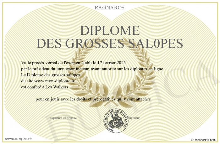 Envoyez par email votre Diplôme des grosses sal0pes personalisé